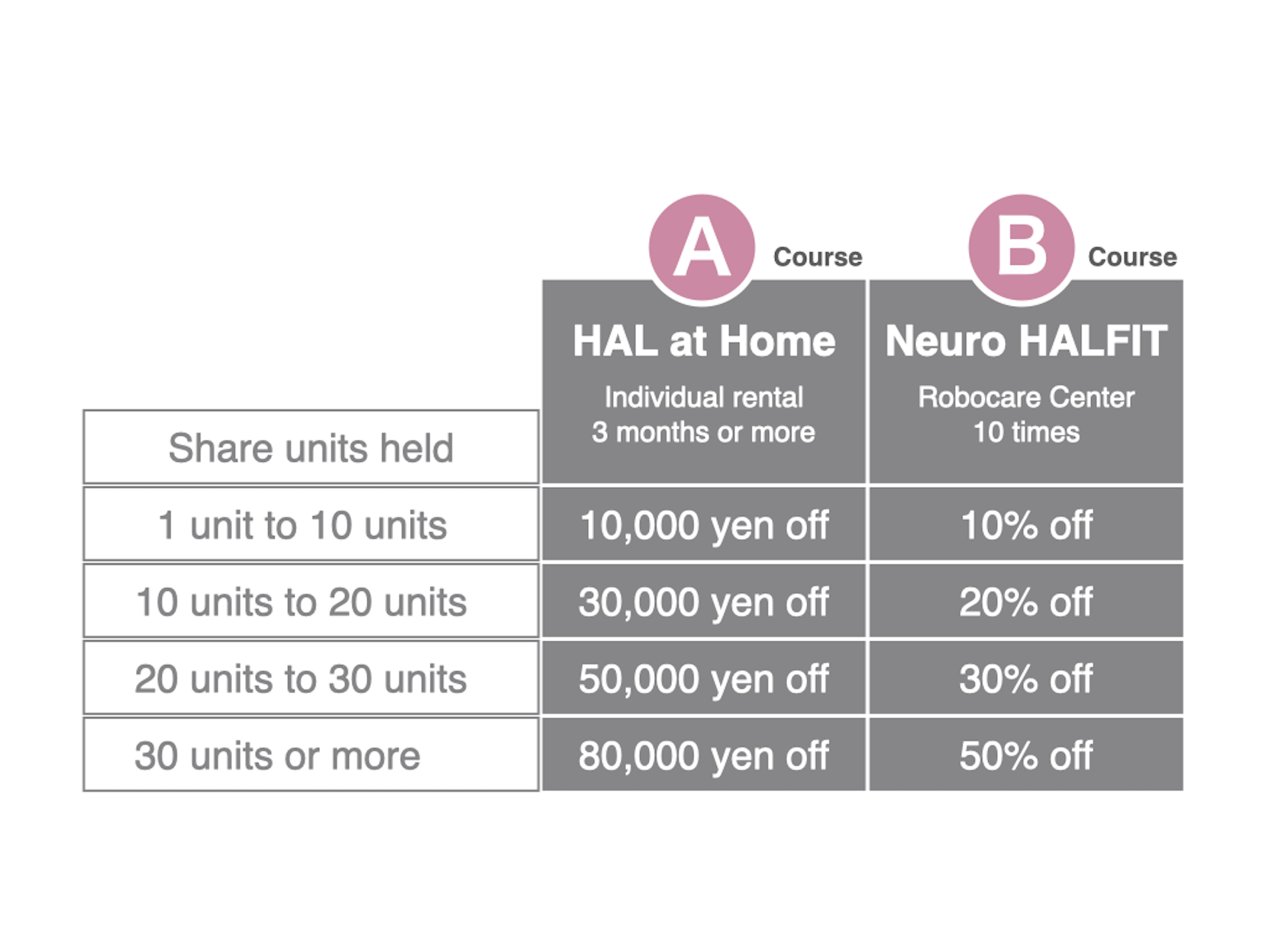 As a token of our appreciation to our shareholders who support us daily, we have introduced the shareholder benefit scheme to facilitate access to Neuro HALFIT, the world’s first program to promote the improvement of brain-nerve-muscular systems with HAL™.